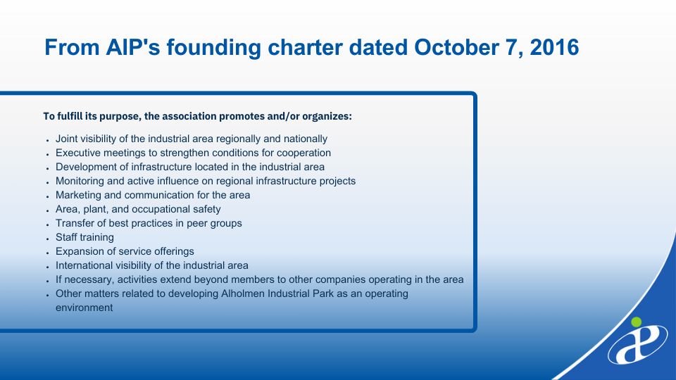 Alholmen Industrial Park is a strong concentration of eight industrial and 53 service companies, employing almost 2,000 people directly – the impact on the surrounding region increases the number of jobs by hundreds more. AIP is also the first good summer job location for many young people. The companies in the region employ more than 300 young people annually for summer jobs.